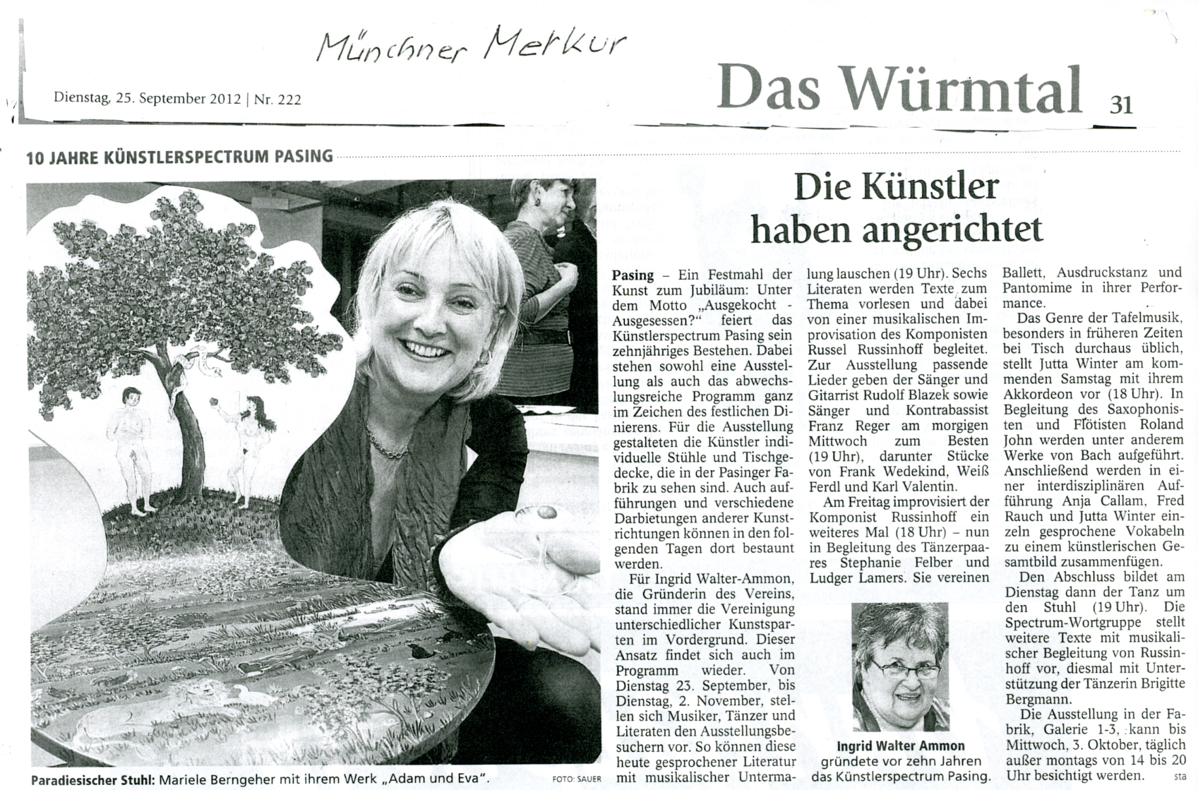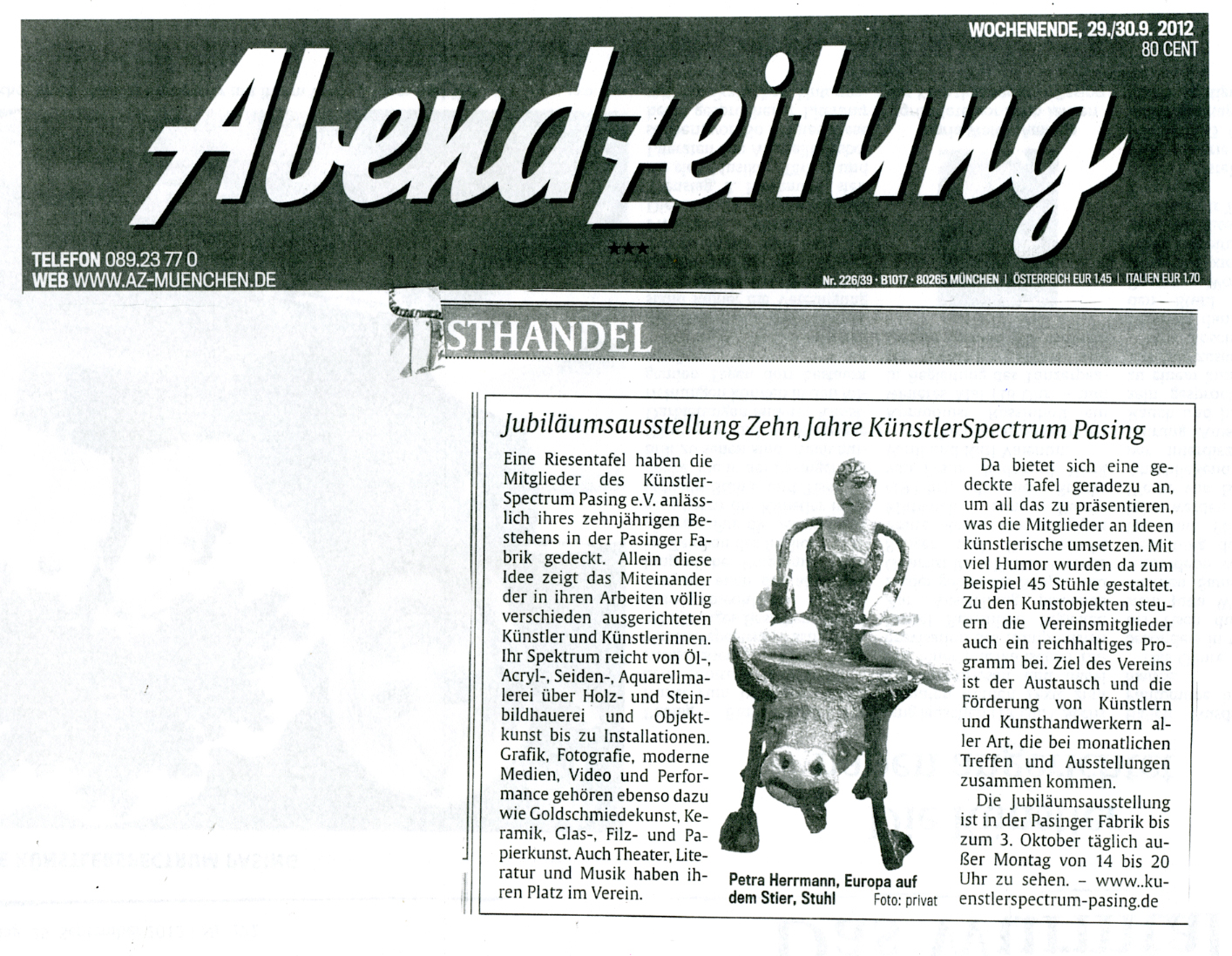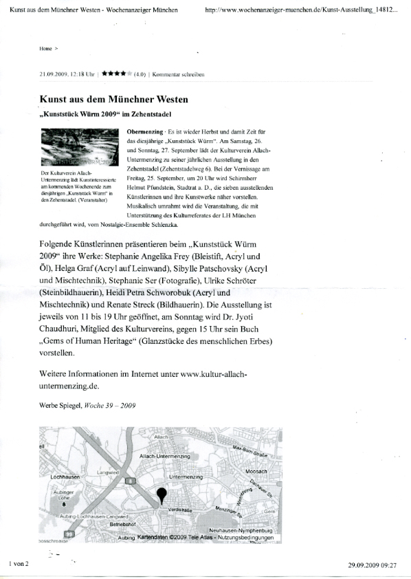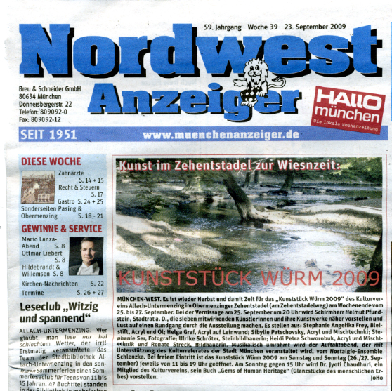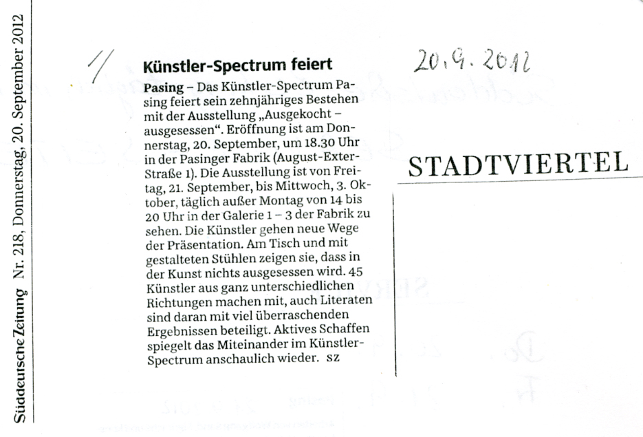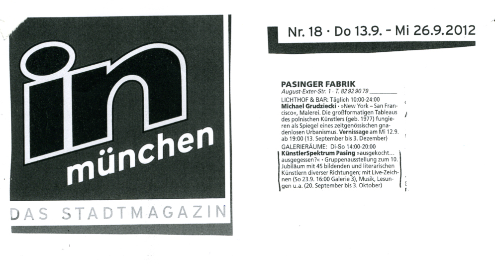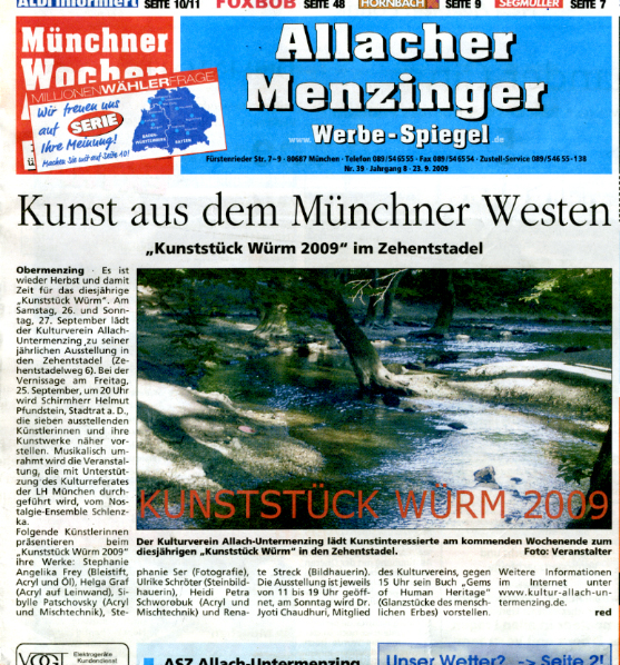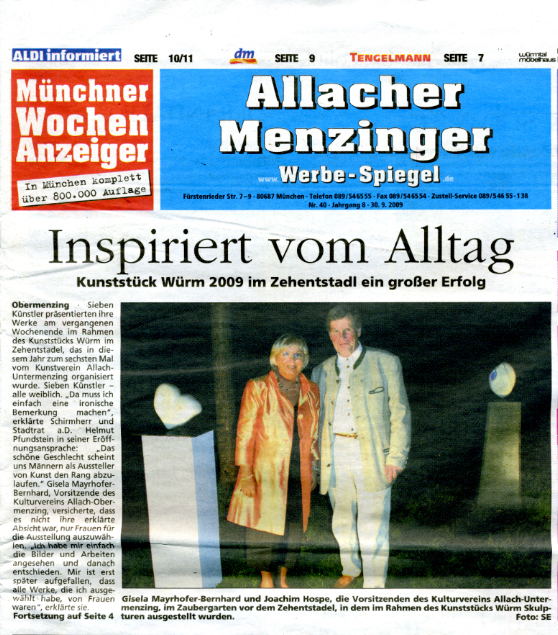 Presseartikel SZ Seite 1, SZ Seite 2, SZ Seite 3, SZ Seite 4, Aubinger-Neuaubinger Zeitung, Abendzeitung, Hallo München 1, Hallo München 2, In München, Isarbote, M Art, Münchner Merkur, Werbespiegel.