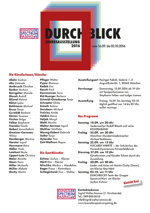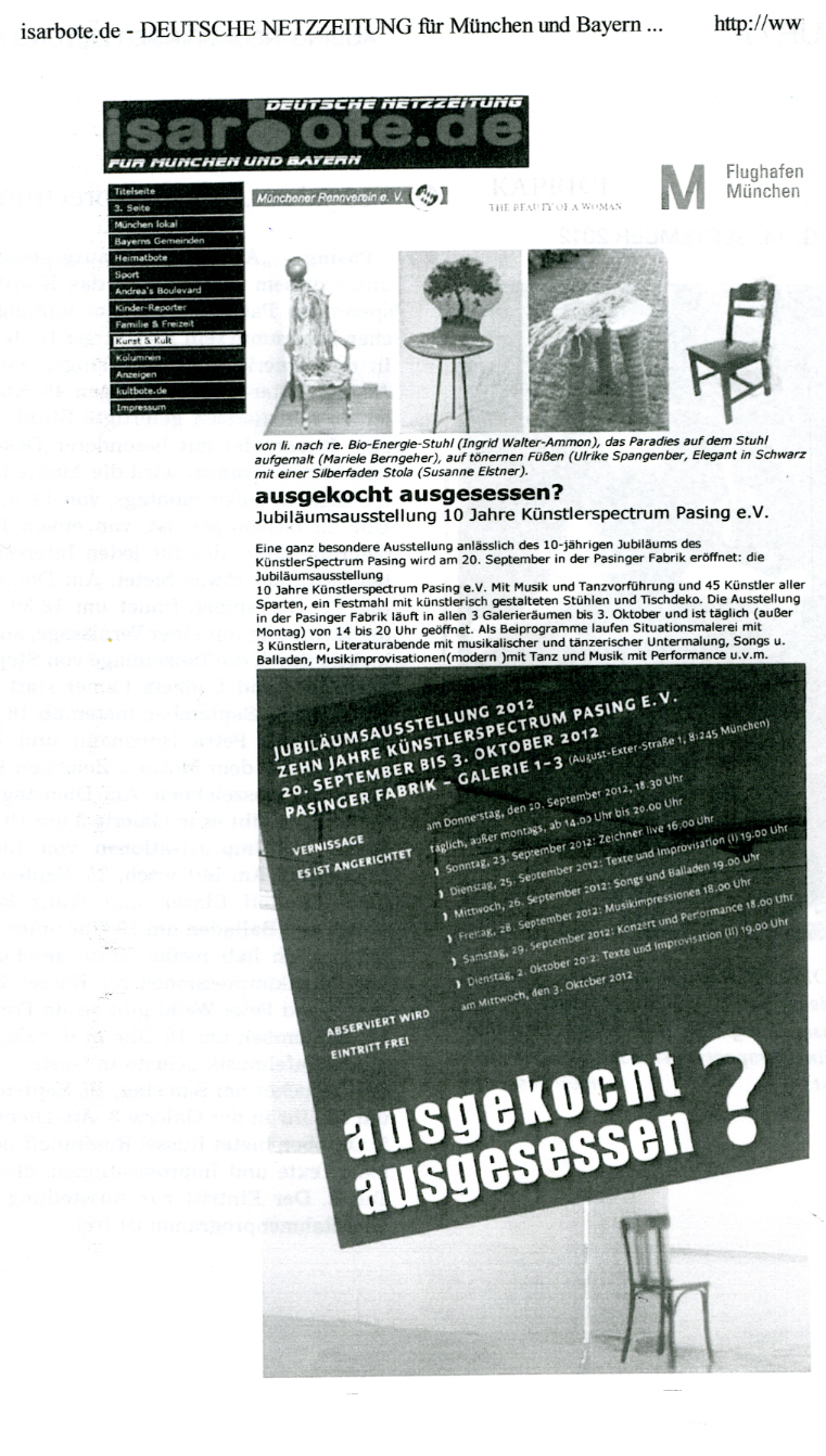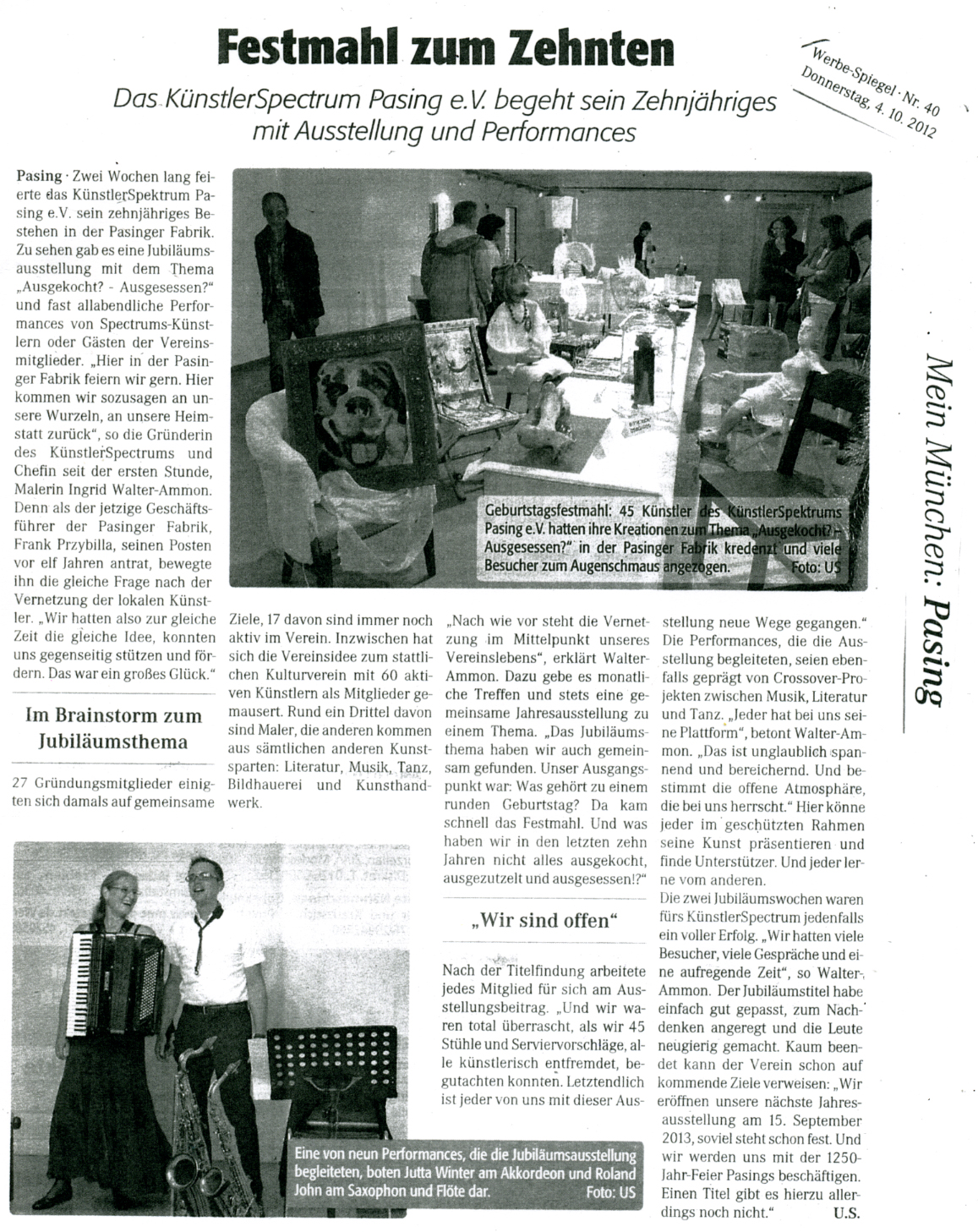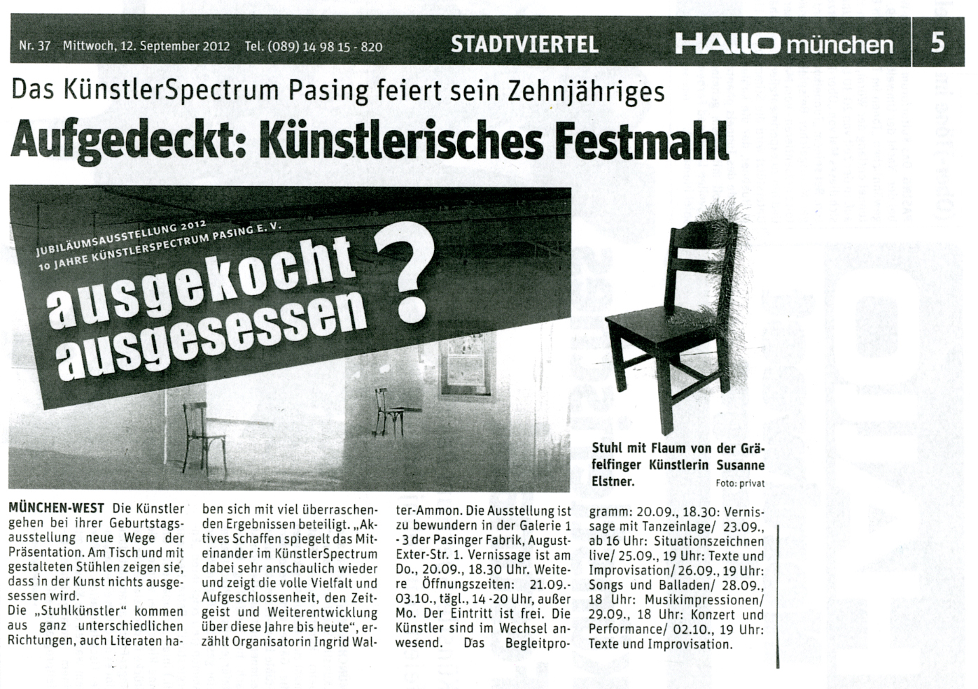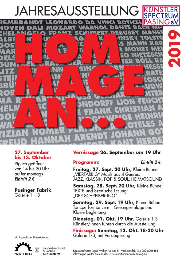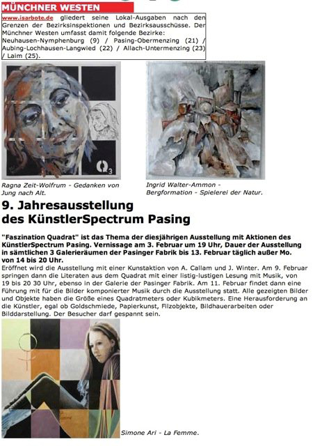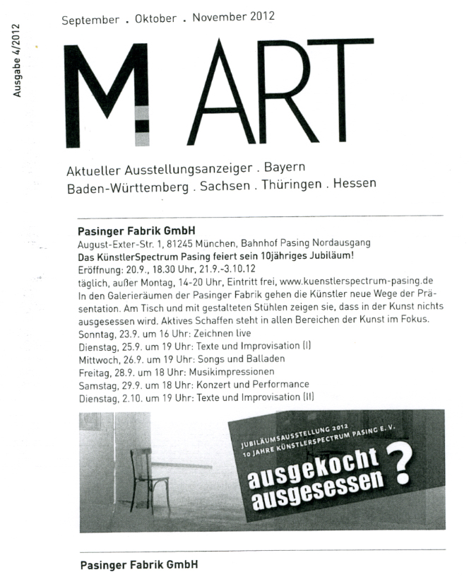 JAHRESAUSSTELLUNG des Künstlerspektrum Pasing e.V. täglich geöffnet von 14 - 20 Uhr, außer montags, Eintritt frei