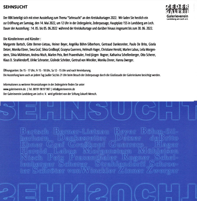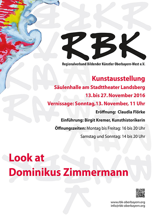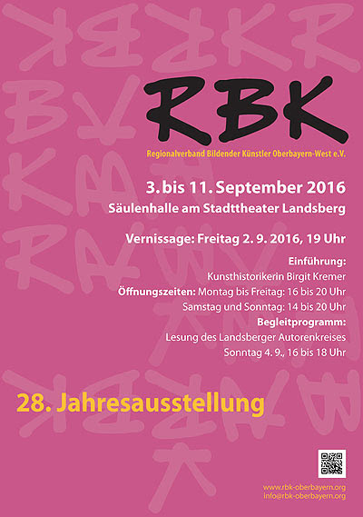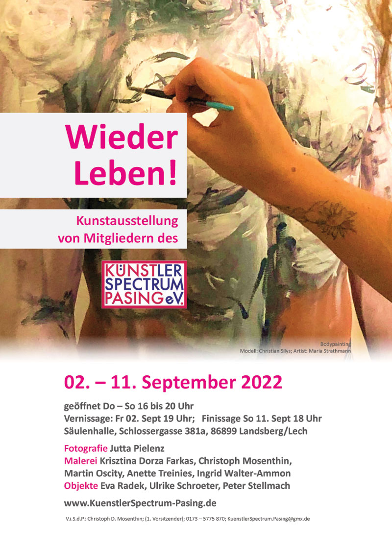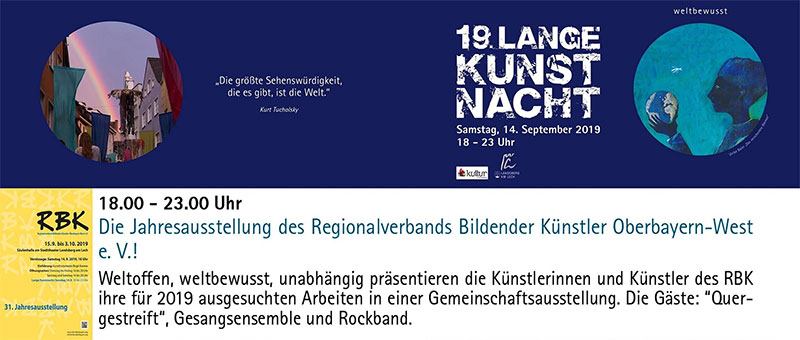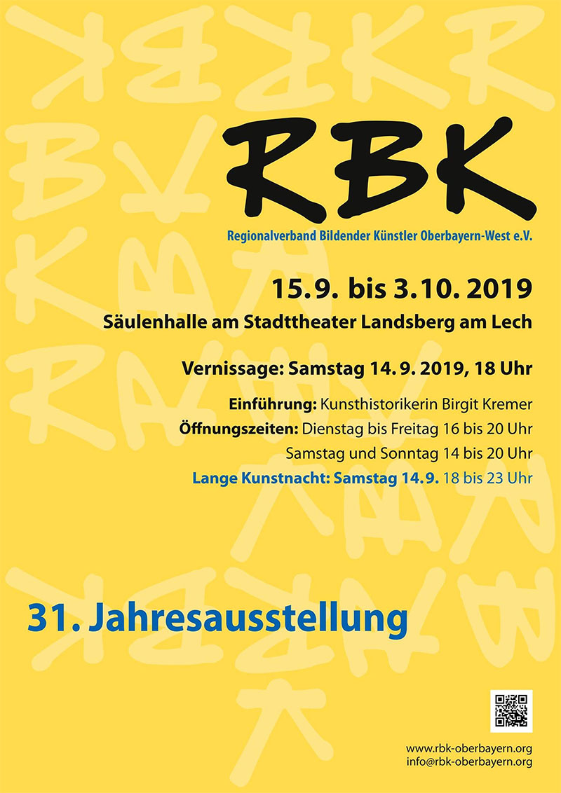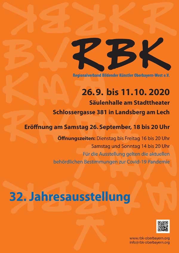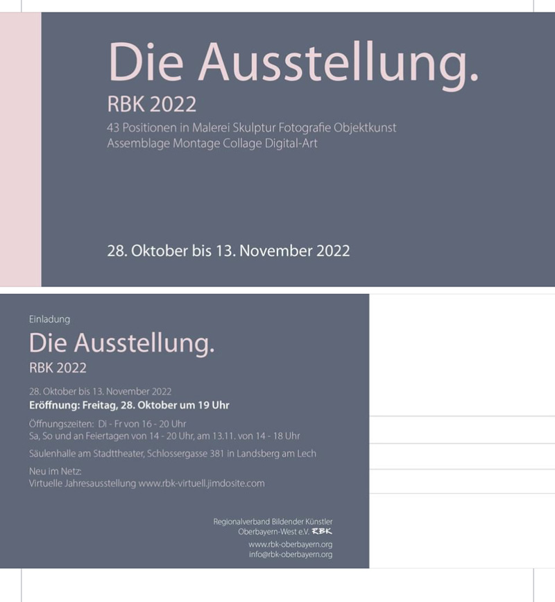 der RBK Regionalverband Bildender Künstler Oberbayern-West e.V. eröffnet am 28.10.2022 seine Jahresausstellung 2022 in der Säulenhalle in Landsberg am Lech, Schlossergasse 381 neben dem Stadttheater um 19 Uhr